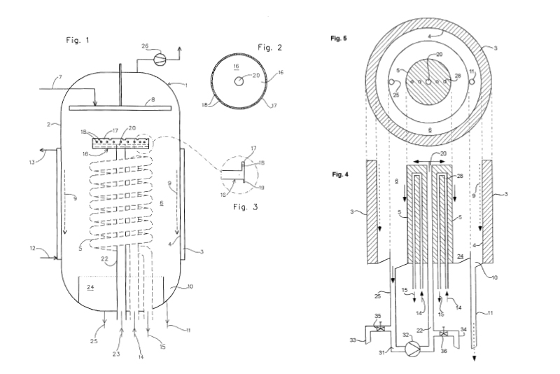 See picture above: Fig. 1 and 2: From UIC GmbH patent “PROCESS FOR REMOVING VOLATILE COMPONENTS FROM A SUBSTANCE MIXTURE AND APPARATUS FOR PERFORMING THIS PROCESS”